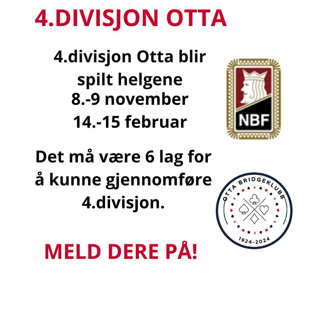 Otta Bridgeklubb har akkurat fylt 100 år, klubben har 41 medlemmer. Spiller hver onsdag på Otta videregående skole( Skansen 9, 2670 Otta.) kl.18.00. Spille avgiften er 160,- pr. par. Kan betales med vipps #130807 eller kontant.